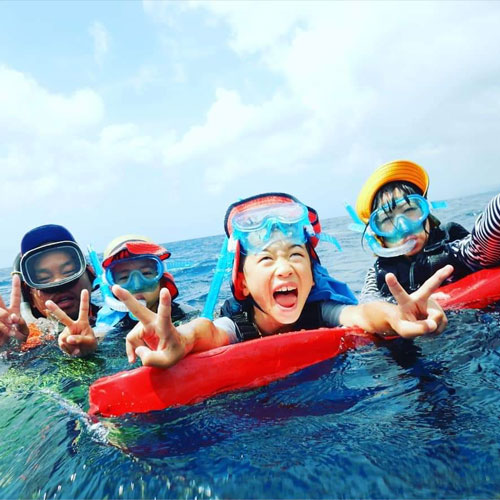 笑顔向上請負所では、足のつく場所で慣れるまで丁寧に講習し、練習をした上でシュノーケルポイントに移動して泳ぎますので、ご安心下さい。深い所が怖いという方には、レスキューチューブという浮き輪につかまって泳ぐ事も可能です。常にスタッフが近くに居ますので安心して楽しんでいただけます。少しでも不安な事があればツアー前でもツアー中でもお気軽になんなりと言って下さい。