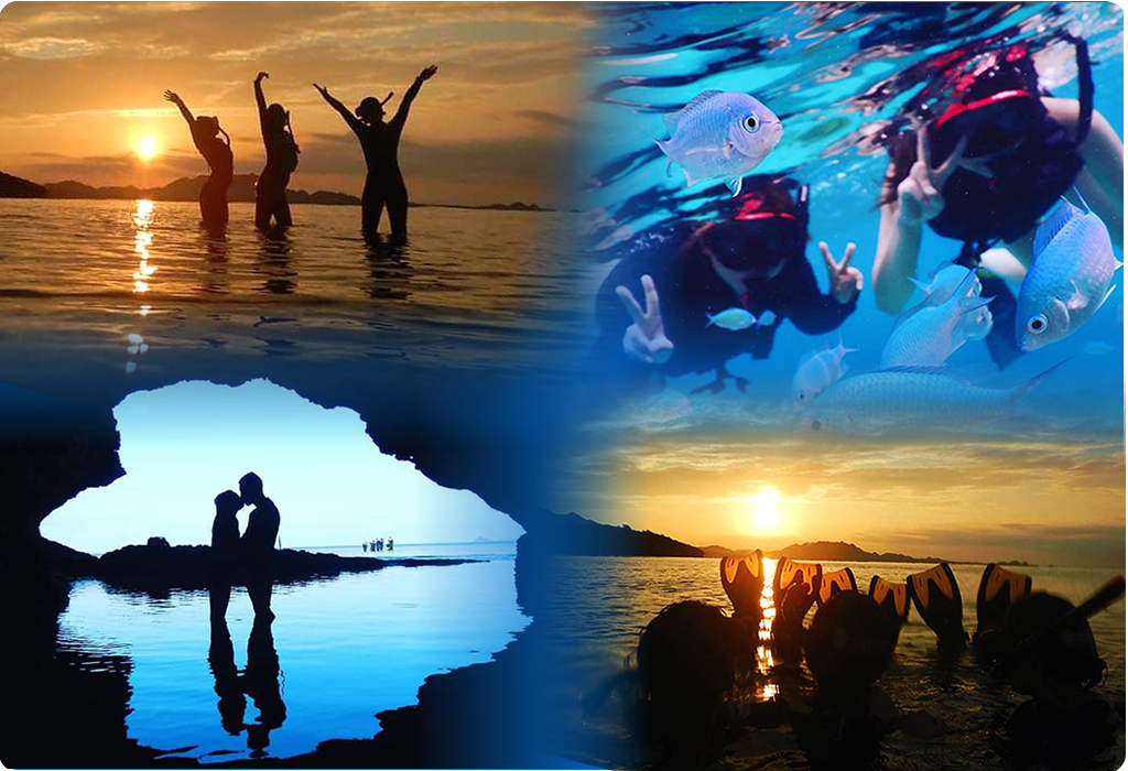 このツアーは日没3時間前の夕方スタートなので陽射しも穏やかで優しいんです♪ もちろん、最初は明るい空と海♪ 段々と西に傾く太陽で刻一刻と変わる空と海の色♪ だからこそ撮影できるシーンがあるんです♪ インスタジェニックな写真を撮ってInstagramにUPしちゃいましょう♪ 気がつけば太陽が西に沈んでいきます。魅惑のサンセットタイムにロマンティック感動体験しませんか?
